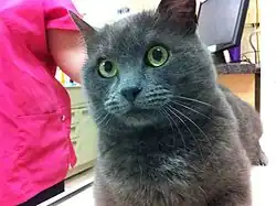 • Blue - On December 16, 2013, Blue, a Russian Blue cat with a badly infected tail was rescued when he was trapped in White Rock.[28] Blue had lived outside for over two years, but showed himself to be completely tame after being rescued.[29] Most of his tail was amputated at the time of his neutering surgery.[29] Blue was soon adopted after being fostered.[30]