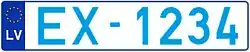 The Latvian government allows registering personalized plates. In 2006, CSDD decided to increase price from 542.80 LVL to 2,500 LVL, because the old price became too affordable.[3] Personalized plates can consist from two to eight symbols: letters, numbers or spaces. The same symbol can be repeated maximum 3 times without breaks (for example, "XXXIXXX").