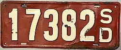 - ^ "Old South Dakota License Plates". LeatherLicensePlates.com. Retrieved July 21, 2017.