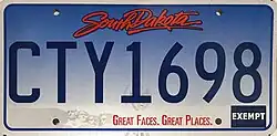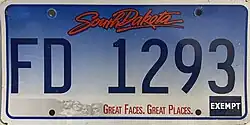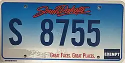 - ^ a b c Tanner, Eric N. "South Dakota Passenger License Plates". allaboutlicenseplates.com. Retrieved November 11, 2020.