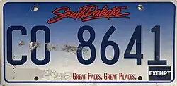 Vehicle registration plates of South Dakota