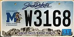 Coded by county of issuance (1 or 10) | First base to feature a graphic of Mount Rushmore in any form. |