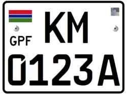 27x20 cm Black on White Gambian Flag as well as the text GPF on the top left corner of the license plate | |||