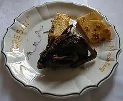 • Polenta e osei: spit roasted small game birds like larks, thrushes, house sparrows and quails, served together with polenta. Under the Republic of Venice this dish spread to eastern Lombardy territories, and in Bergamo a cake took the same name (polenta e osei).