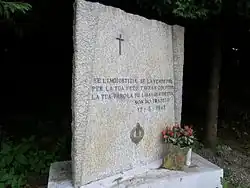 The partisan war in the Vercelli area was characterized by the presence of multiple partisan units in the area, which engaged not only in classic local guerrilla actions, but also in mountain and lowland open field combat operations, with some local successes alternating with defeats.[20] In addition to this, the partisan forces attempted to liberate some areas of the province, coming to constitute real enclaves within the territory controlled by the republican fascists and the Germans: this is the case, for example, of the Republic of Valsesia and Valsessera, which were free between June and July 1944 and then - the latter - from March 1945. The last reprisal perpetrated by the fascists in the province took place on March 9, 1945 in Salussola with the shooting of twenty or twenty-one partisans, in response to a partisan ambush conducted on March 6 in the same locality and resulting in the death of four fascists.[21][22]