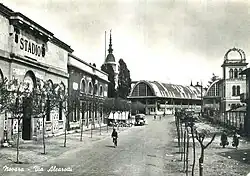 Meanwhile, the first Allied troops began to flow into Novara, and on May 13 they also began to garrison the stadium, taking over from the partisans in the surveillance of prisoners.[45] Between May 16 and 18 the prisoners from Novara were picked up by the Allies, who used fourteen trucks for transport: nine left from the stadium, five from the Tamburini barracks. The men were transported mainly to Bologna and from there sorted to various places, including Coltano, while the women (loaded on two trucks) were taken to Milan, at the disposal of the Fifth Army for clearing rubble and other work.[45]