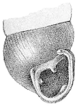Aperture is slightly oblique, semiovate or piriform, obstructed by 3 teeth: in the middle of the parietal wall, on the columella, and a smaller one in the palate (frequently wanting). Peristome is spreading, slightly labiate, the margins joined by a callus, the right margin very strongly curved above, columellar margin is somewhat dilated, spreading.[5]