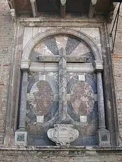 On 20 October 1520, Don Fadrique Enríquez de Rivera, First Marquis of Tarifa, returned from a trip through Europe and the Holy Land.[3] During Lent in 1521,[2] he inaugurated the observance in Seville of the Holy Via Crucis.[2][4] The route began in the Chapel of the Flagellations of his palace and ended at a pillar[2] located in what some sources say was known as the Huerta de los Ángeles (Orchard of the Angels), but more likely it was called Huerta de la Hermandad de Nuestra Señora de los Ángeles,[6] not far from the Cruz del Campo, the terminus of the route since 1630.[2] This route ran the same distance of 997 metres (3,271 ft) or 1321 paces supposed to have separated the praetorium of Pontius Pilate from Calvary.[2] The Marquis's palace, the Palacio de San Andrés,[2] was then still partly under construction;[7] it later became known as the Casa de Pilatos through its association with the Via Crucis,[2][4] and, much altered over the next few centuries, is now property of the dukes of Medinaceli.[2][8] It was declared a National Monument in 1931.[9] The oldest documentation of the name Casa de Pilatos is from 1754.[3]