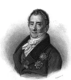 Following the Bourbon Restoration, King Louis XVIII gave him back his rights in 1814, but not all his fortune. He was sent as an Envoy Extraordinary and Minister Plenipotentiary of France to the Brandenburg-Prussian Court in Berlin, charged with the mission of receiving the numerous columns of prisoners that Russia, Poland and Prussia were returning to France.[4] On 17 August 1815, he was named a Peer of France.[5]