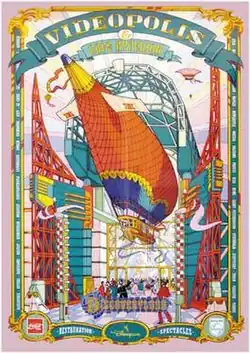 The building is themed to dreams of the future from the turn of the twentieth century, especially air exploration. The airship hanging outside the building is from the 1974 film, The Island at the Top of the World. Videopolis also houses the Café Hyperion, the largest fast-food restaurant in the park.[1] This building features inspiration from Discovery Bay, a former Disneyland concept by Imagineer Tony Baxter (a land themed to Victorian visions of the future), which also inspired Discoveryland.