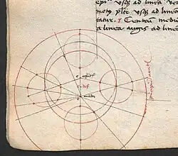 Vienna ÖNB 5203[1] is a fifteenth-century astronomical multiple-text (and multi-graphical), miscellany manuscript conserved at the Austrian National Library (Österreichischen Nationalbibliothek).[2] One of the main features of this codex is that it has been largely copied by the hand of Regiomontanus,[3] a famous German mathematician, astrologer and astronomer of the fifteenth century. Apart from Regiomontanus’ autograph, Vienna ÖNB 5203 contains examples of two other scribal hands, one of which belongs to Georg von Peurbach, who was as well an astronomer, mathematician and instrument maker of Austrian origin. The manuscript also contains a number of Peurbach's works, including his most famous one – Theoricae Novae Planetarum, a re-elaboration of Ptolemaic astronomy theories in a more comprehensive way. Other treatises in Vienna ÖNB 5203 touch upon a great variety of subjects, including astronomy, astrology, music, mathematics and physics.[4]