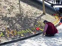 Villain hitting, da siu yan (Chinese: 打小人), demon exorcising,[1] or petty person beating,[2][3] is a folk sorcery popular in the Guangdong area of China and Hong Kong—primarily associated with Cantonese. Its purpose is to curse one's enemies using magic. Villain hitting is often considered a humble career, and the ceremony is often performed by older ladies, though some shops sell "DIY" kits.