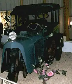 The first 4HP Villard was constructed in 1923.[2] It appeared to be a late-comer to the Cyclecar boom that had followed the First World War.[1] It had only three wheels, with the single wheel, at the front, providing both the traction and the steering.[2] The wheelbase was of 1,850 mm (72.8 in) and the two-stroke engine of 345cc.[2]