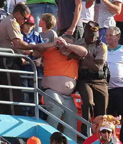 - In May 2004 after an Australian Football League Friday Night Football match between Adelaide and St Kilda at AAMI Stadium which St Kilda won by 32 points, field umpires were booed and abused by Adelaide fans, and a drink bottle was thrown which hit a 12-year-old St Kilda fan. One fan was ejected and banned for one year from the arena.[17]