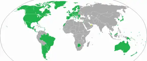- ^ The regulations of 2019 specified a visa waiver for nationals of all countries in the Commonwealth of Nations except for Bangladesh, Cameroon, Gambia, Ghana, India, Jamaica (between 15 and 70 years of age), Nigeria, Pakistan, Sierra Leone, Sri Lanka and Uganda.[26] Rwanda joined the Commonwealth of Nations in 2009, and Gabon and Togo joined in 2022, but as of 2024 Timatic still listed a visa requirement for nationals of these countries.[5]
