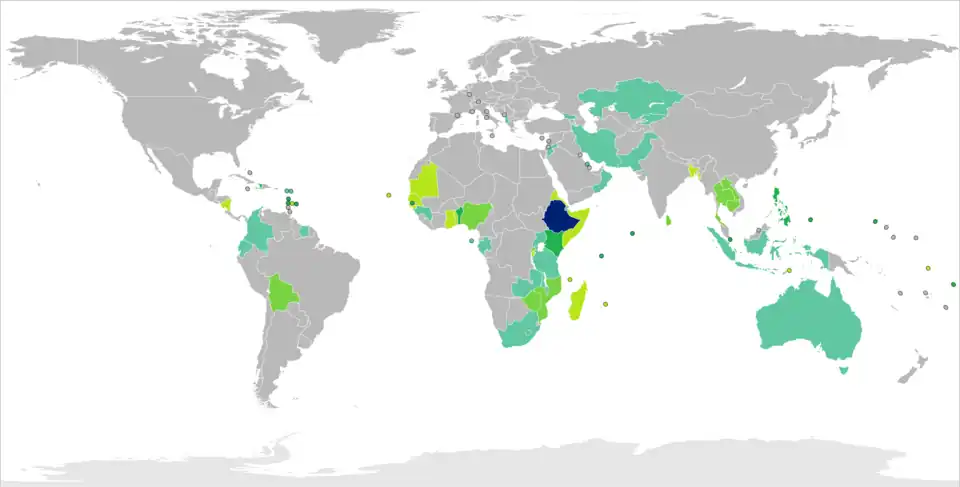 Visa requirements for Ethiopian citizens are administrative entry restrictions by the authorities of other states placed on citizens of Ethiopia. As of April 2025, Ethiopian citizens had visa-free or visa on arrival access to 46 countries and territories, ranking the Ethiopian passport 91st in terms of travel freedom (tied with passports from Congo (Dem. Rep.)and Myanmar) according to the Henley Passport Index.[1]