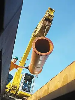 Bell & Spigot Pipe manufactured in the U.S. going into the trench