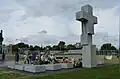 The dominant feature of the monument is a seven-meter cross with a figure of Jesus Christ without arms. The monument covers an area of 160 square meters.[2] In front of the cross, there are 18 plaques with the names of towns from seven pre-war voivodeships of the Second Polish Republic: Wołyń, Polesie, Stanisławów, Tarnopol, Lwów, and partially Lublin and Kraków. One of the plaques bears the inscription:[3] In tribute to Polish citizens, victims of a mass crime with signs of genocide committed by OUN-UPA between 1942 and 1947 in the territories of the former seven voivodeships of the Second Polish Republic. A sarcophagus at the foot of the cross will contain soil from 2,136 towns, the names of which are listed on the plaques.
