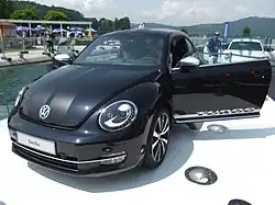 The Volkswagen Beetle, also sold as the Volkswagen Käfer, Volkswagen Coccinelle, Volkswagen Maggiolino, and Volkswagen Fusca in some countries, is a compact car marketed by Volkswagen introduced in 2011 for the 2012 model year, as the successor to the Volkswagen New Beetle launched in 1997. It features a lower profile while retaining an overall shape homaging the original Volkswagen Type 1 Beetle. One of Volkswagen's goals with the model was to give it a more aggressive appearance while giving it some stylistic aspects reminiscent of the Type 1.[2][3] This was an attempt to distance the new model from the New Beetle, produced from 1997 to 2011, which never approached the success of the original Beetle.[4]
