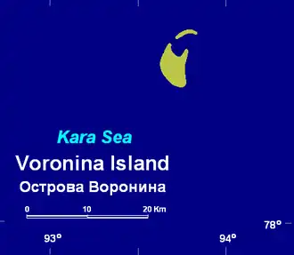 Voronina Island or Voronina Islands (Russian: Острова Воронина, Ostrova Voronina or Остров Воронина, Ostrov Voronina) is an isolated two-island group composed of a larger island and a narrow island on its northern side separated by a 3 km wide sound.