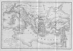 Impressions, souvenirs, pensées et paysages pendant un voyage en Orient, 1832–1833, ou Notes d'un voyageur, shortened to Voyage en Orient, is a travel journal written by Alphonse de Lamartine. This book narrates Lamartine's journey to several Middle Eastern regions now known as Turkey, Lebanon, Israel, and Syria but also South Eastern European countries such as Cyprus, Greece, Bulgaria, and Serbia.[1] The book was published in 1835, and is divided in four volumes, comprising a total of 1260 pages.