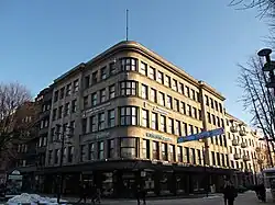 Landsbergis's father, the playwright Gabrielius Landsbergis-Žemkalnis, was an active supporter of the Lithuanian National Revival. Landsbergis studied architecture at the Riga Polytechnical Institute. During World War I, he was drafted into the Imperial Russian Army and completed a school for junior officers. Upon return to Lithuania, he joined the newly established Lithuanian Army and fought in the Lithuanian Wars of Independence. He was taken prisoner by Poland, but managed to escape. He then continued his studies of architecture at the Higher School of Architecture in Rome (now a department of the Sapienza University). Landsbergis returned to Lithuania in 1926 and became one of the most popular and sought-after architects in Kaunas, the temporary capital of Lithuania. He was one of the leaders of a group of about 40 modernist architects working in Kaunas.[1] Eight of his buildings were included in a group 44 buildings awarded the European Heritage Label in 2015. Overall, the modernist architecture of interwar Kaunas has been placed on the UNESCO World Heritage Tentative List in 2017.[2]