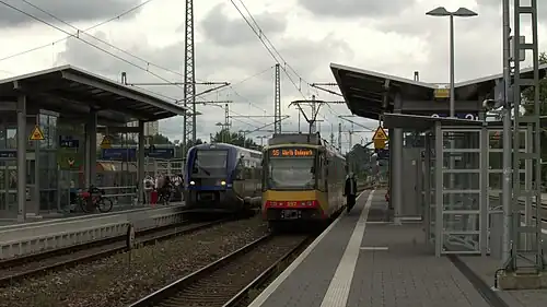 - Platform 3 is located on the island platform with platform 2. It is used by Stadtbahn line S5 towards Wörth Badepark and Regional-Express (RE 6) and Regionalbahn (RB 51) services towards Winden, Landau and Neustadt (Weinstraße).