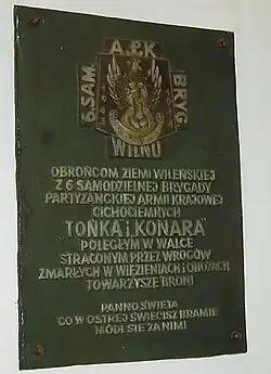 In September 1945 "Szumny" was killed and his unit disbanded.[1] The platoon headed by Łukasiuk decided to continue fighting against the new communist authority joined the 5th Vilnian Home Army brigade and fought several skirmishes at Skiory, Zalesie, and Miodusy Pokrzywne.[1] After the demobilization of the brigade, still wishing to continue fighting, he came under the command of Zygmunt Szendzielarz "Łupaszka".[1] Soon the Szendzielarz brigade moved from the left bank of the Bug river to the region of Sokołów Podlaski where, in October 1945 "Młot" was made the commander of the 6th Vilnian Brigade.[1] He was to lead it for the next three years, ably leading it in the field, escaping numerous attempts at capture by the communists authorities and carrying it through even the most difficult of circumstances. At one point a reward of 100,000 zlotych was established by the UB for information leading to his capture.[1]