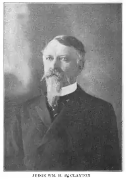 William Henry Harrison Clayton (October 13, 1840 – December 14, 1920) was an American lawyer and judge in post-Civil War Arkansas and Indian Territory, Oklahoma. He served as the United States Attorney for the United States District Court for the Western District of Arkansas, as chief prosecutor in the court of "hanging judge" Isaac C. Parker for 14 years and as a federal judge in the Central District of the Indian Territory that became the state of Oklahoma.