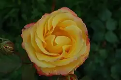 | Peer Gynt | hybrid tea | yellow, red edges | 1968 |