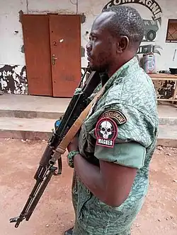 In late March 2018, Russia's Ministry of Foreign Affairs stated five Russian soldiers and 170 "civilian instructors" had been sent to the CAR to train its servicemen.[10][11] According to CAR's president, Faustin-Archange Touadéra, the training provided would strengthen the effectiveness of the CAR's armed forces in combating "plunderers". Later, the instructors were confirmed to be Wagner PMCs who were sent to the CAR to protect lucrative mines, to support the CAR government[12] and provide close protection for Touadéra.[13]