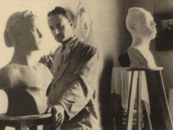 After returning to Syria in 1937 he taught art at the al-Mamoun (Tajhis al Oula)[14] in Aleppo and also maintained a vibrant studio which also grew to be an intellectual hub.[15] He taught periodic academy-style classes at his atelier, and organized and held gallery exhibitions with other Aleppine artists.[16] There, he also hosted salons that attracted many contemporary philosophers and political thinkers.[4] His work from that period included sculpture, oil painting, and photography.