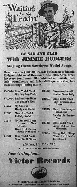 - ^ "Victor matrix BVE-47223. Waiting for a train / Jimmie Rodgers - Discography of American Historical Recordings". adp.library.ucsb.edu. Retrieved 2022-03-11.