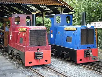 ![]() Walrus (in red) and Dolphin (in blue), on the Groudle Glen Railway in August 2009 | |||||||||||||||||
