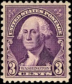 While the bicentennial issue presents many unfamiliar images of Washington, the Post Office took care to place the widely loved Gilbert Stuart portrait of the president on the 2-cent stamp, which satisfied the normal first-class letter rate and would therefore get the most use. Several months after the series appeared, however, the first-class letter rate was raised from 2 cents to 3 cents. The greatly increased demand for 3-cent stamps remained unsatisfied by emergency reprintings of the 3-cent Washington Bicentennial issue and the 3-cent Lincoln regular issue then currently available. Moreover, the new rate meant that the only Washington stamp available to the public for everyday use was one that offered a little-known and quite uncharacteristic image of Washington. Accordingly, the Post Office felt obliged to rush a new regular issue 3-cent stamp into production that offered a more familiar Washington portrait. Rather than taking the time to create a completely new design, the BEP revamped the bicentennial 2-cent Atheneum value as a 3-cent stamp (Scott #720), transforming it into a regular issue by eliminating the date ribbons flanking the portrait. This was printed in the standard 3-cent color, and also issued as vertical and horizontal coil stamps.[3]