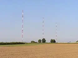 The Weißkirchen radio transmitter was a medium-wave broadcasting facility located near Weißkirchen, Oberursel, Germany. It was the most powerful European AM transmitter of the American Forces Network and transmitted on 873 kHz with a power of 150 kilowatts. It started operation in May 1951 on 872 kHz and moved its frequency to 873 kHz in 1978 according to the regulations of Waveplan of Geneva. The transmitter ceased broadcasting on 31 May 2013, and was decommissioned in September 2014.[1] Its aerial consisted of three guyed lattice steel masts built in 1954–55. These masts, each eighty-six metres tall and insulated against ground, were arranged in a row with a distance of 140 metres between each mast. On 23 April 2015 the aerial was dismantled.[2]