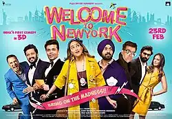Welcome To New York is a 2018 Indian Hindi-language 3D comedy film, directed by Chakri Toleti, produced by Vashu Bhagnani and his son Jackky Bhagnani, and starring Diljit Dosanjh, Sonakshi Sinha, Karan Johar, Ritesh Deshmukh, Boman Irani, and Lara Dutta. The film was released on 23 February 2018.[2]