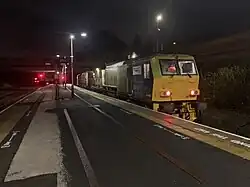 As of December 2023, Wellington is currently served by two trains per hour off-peak each way between Birmingham New Street and Shrewsbury, one operated by West Midlands Railway and the other by Transport for Wales. Transport for Wales' service operates to/from Birmingham International and runs limited stop, whilst the West Midlands railway services serves local stations.[9] TfW Rail trains continue beyond Shrewsbury alternately either to Aberystwyth and Pwllheli (combined portion service) or to Holyhead via Chester and Llandudno Junction. There are also two services to Llandudno (one on weekends) and one to Manchester Piccadilly, via Warrington Bank Quay on weekday evenings. On Sundays, hourly services are provided by Transport for Wales and West Midlands Railway.