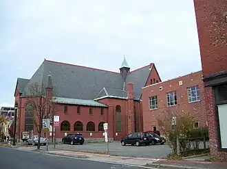 Circuit Rider Jessie Lee came preaching the Gospel in Salem in the early 1800s. A small gathering of early Christians met in a storefront and sat on boxes to hear Jesus Christ proclaimed. They purchased the Harbor Street building and met for years until growth multipled the congregation. Wesley was built at 8 North street where 800 members worshiped regularly under the excellent ministry of outstanding pastors. In 1910 Lafayette St UMC moved to their new home at 296 Lafayette street until the 1994 merger [of Wesley Methodist Church and Lafayette Street United Methodist Church].[2]