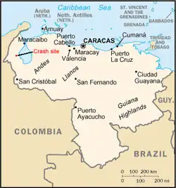 7. ^ Muse, Toby; Henley, Jon (17 August 2005). "160 killed in plane crash in Venezuela". The Guardian. ISSN 0261-3077. Retrieved 25 March 2021.