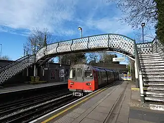 ![]() Northern line train arriving in the southbound platform at West Finchley | |