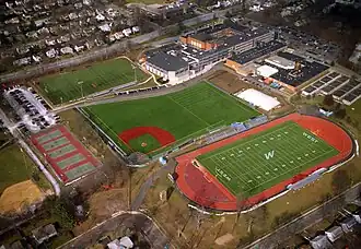 The West Orange High School Mountaineers[2] compete in the Super Essex Conference, which is comprised of public and private high schools in Essex County and was established following a reorganization of sports leagues in Northern New Jersey by the New Jersey State Interscholastic Athletic Association (NJSIAA).[10] Before the NJSIAA's 2010 realignment, the school had competed in the Northern Hills Conference an athletic conference comprised of public and private high schools located in Essex, Morris and Passaic counties.[11] With 1,574 students in grades 10-12, the school was classified by the NJSIAA for the 2019–20 school year as Group IV for most athletic competition purposes, which included schools with an enrollment of 1,060 to 5,049 students in that grade range.[12] The football team competes in the Liberty White division of the North Jersey Super Football Conference, which includes 112 schools competing in 20 divisions, making it the nation's biggest football-only high school sports league.[13][14] The school was classified by the NJSIAA as Group V North for football for 2024–2026, which included schools with 1,317 to 5,409 students.[15]