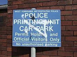 Relic of the former West Yorkshire Metropolitan Police – sign found near former police building in Wakefield city centre (now removed)