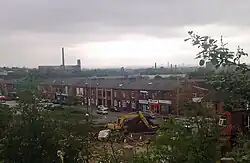 Historically a part of Lancashire, Westwood was formerly an electoral ward of the County Borough of Oldham, but is now split between the wards of Coldhurst and Werneth, which lie to the north and south respectively. Apart from its industrial and commercial units, Westwood's built environment is "almost entirely" composed of Victorian era terraces, with some small pockets of housing association and council house properties.[1]