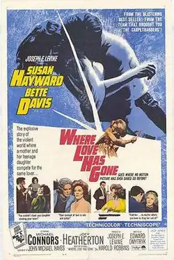 Where Love Has Gone is a 1964 American Technicolor drama film in Techniscope made by Embassy Pictures, Joseph E. Levine Productions and Paramount Pictures. It was directed by Edward Dmytryk and produced by Joseph E. Levine from a screenplay by John Michael Hayes based on the 1962 novel of the same name by Harold Robbins. The music score was by Walter Scharf, the cinematography by Joseph MacDonald and the costume design by Edith Head.