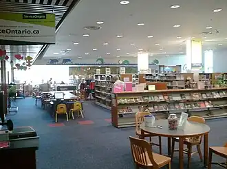 The Whitchurch–Stouffville Public Library traces its heritage to 1877 when it was first established in Allan's Jewellery Store. A key promoter was J. Wideman, the editor of the local newspaper, the Alert.[1] The library was known as the Mechanics' Institute, and for a time was located in the old Municipal Building (today The Lebovic Centre for Arts & Entertainment – Nineteen on the Park). It held 793 volumes in the early 1880s,[2] 1009 volumes in 1884,[3] and more than 2,500 in 1895.[4]