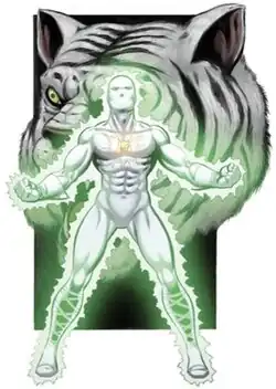 Hector Ayala was born in the city of San Juan, Puerto Rico. He was attending college at Empire State University in New York City,[6] when he found the tiger amulets that the Sons of the Tiger had worn and discarded. By putting on all three amulets, he was transformed into a superhuman form called the White Tiger. He discovered that wearing all the pendants at once increased his strength and gave him nearly superhuman skill in the martial arts.[7]