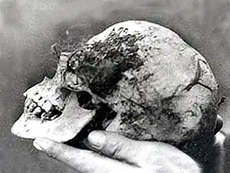 The skull of "Wych Elm Bella," as retrieved 18 April 1943
