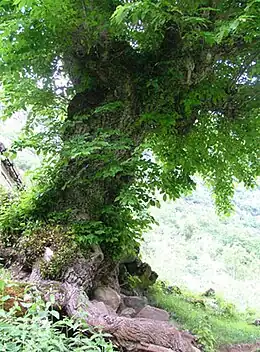 2. ^ The tree is described in some sources as a "wych-hazel",[2] an old name for the same kind of elm.[4]