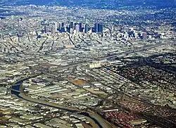 The Wholesale District or Warehouse District in Downtown Los Angeles, California, has no exact boundaries, but at present it lies along the BNSF and Union Pacific Railroad lines, which run parallel with Alameda Street and the Los Angeles River.[1] Except for some ancillary commercial uses, its cityscape is mostly occupied by warehouses and refrigerated storage facilities. This area is known as Central City North in the Los Angeles city zoning map.[2]